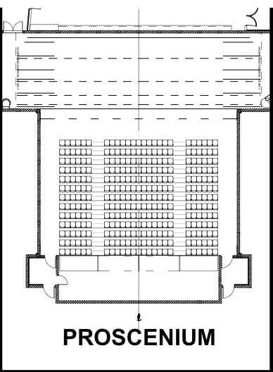 The “Black Box” moniker refers to the space’s ability to be configured in layouts other than traditional proscenium theatre. We can accommodate the following configurations: